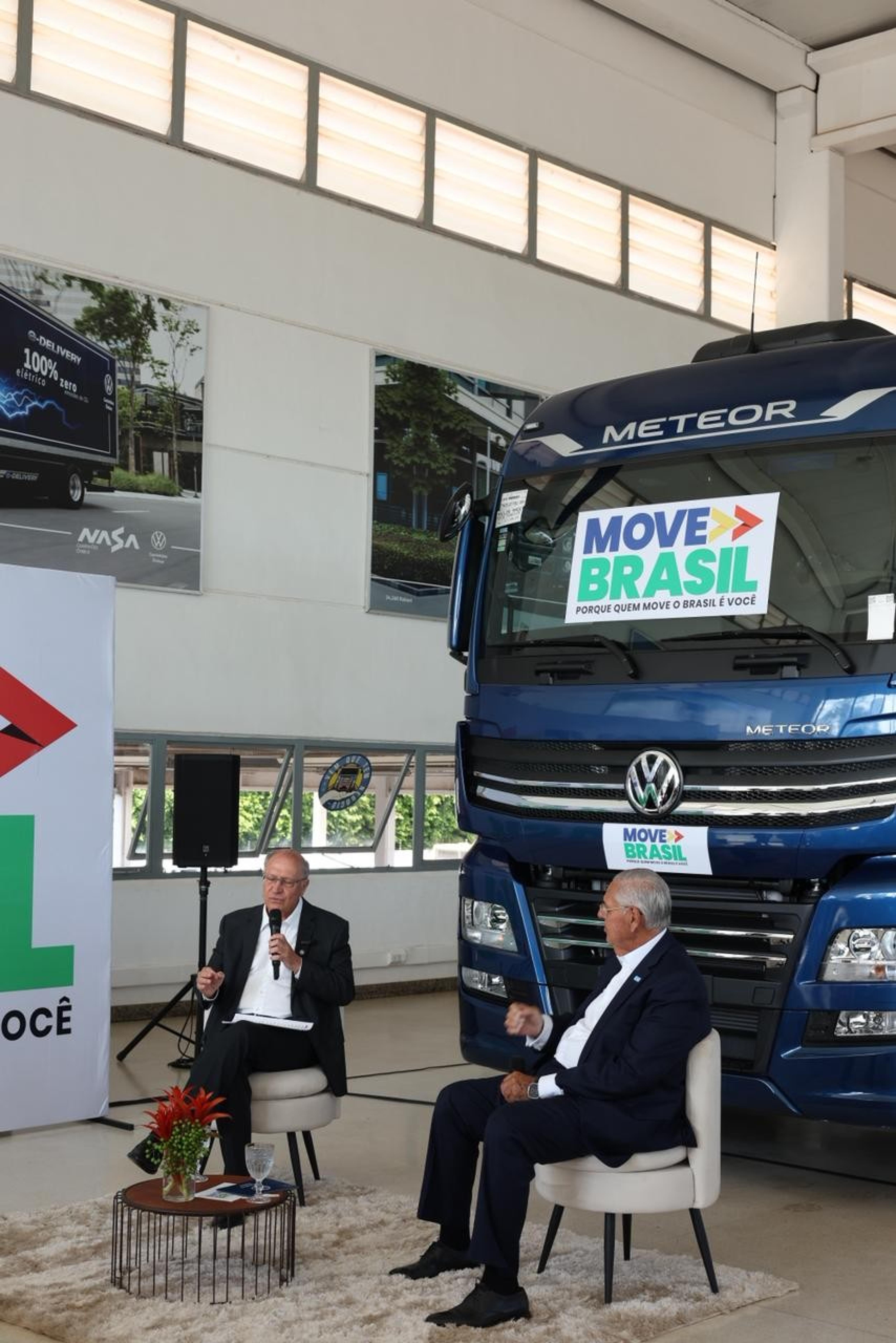 Geraldo Alckmin, vice-presidente da República e ministro do Desenvolvimento, Indústria, Comércio e Serviços, foi recebido hoje (8) em Brasília (DF) por Roberto Cortes, presidente e CEO da Volkswagen Caminhões e Ônibus, para uma visita à concessionária autorizada Nasa Caminhões e Ônibus. Ambos acompanharam o atendimento aos primeiros clientes interessados no Programa BNDES Renovação de Frota (Programa Move Brasil), que pretende estimular a renovação sustentável da frota brasileira, a redução de emissões e o aumento da eficiência dos transportadores.